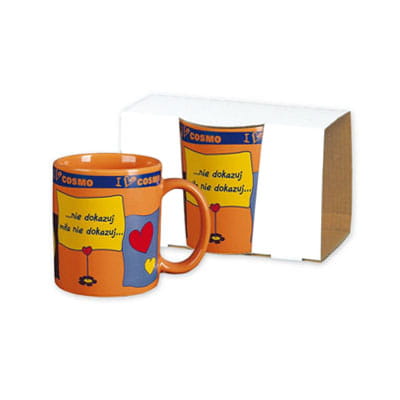 Opakowanie reklamowe P/701 na kubek - materiał wykonania to mikrofala. Realizujemy zamówienia już od 24 sztuk.